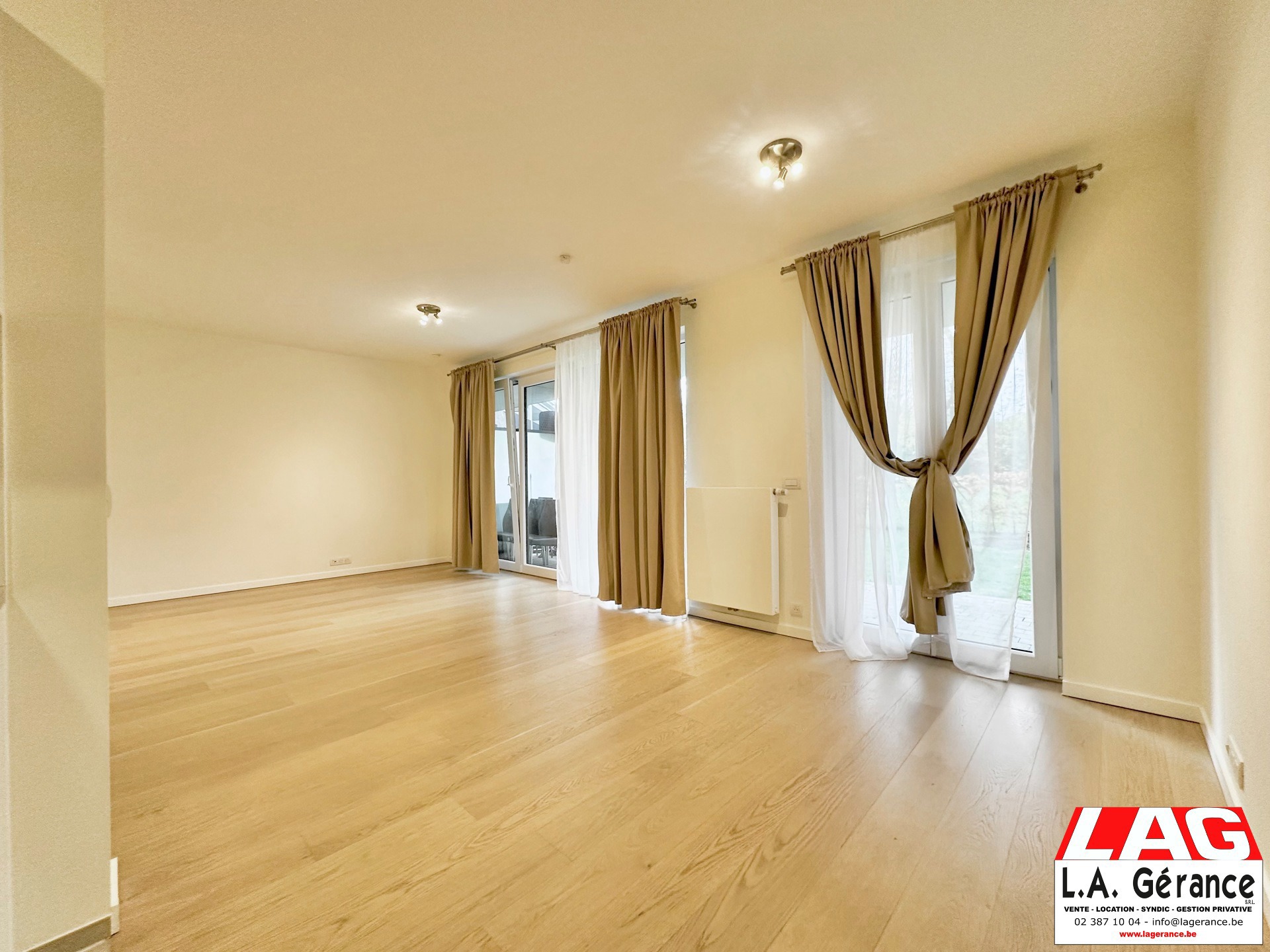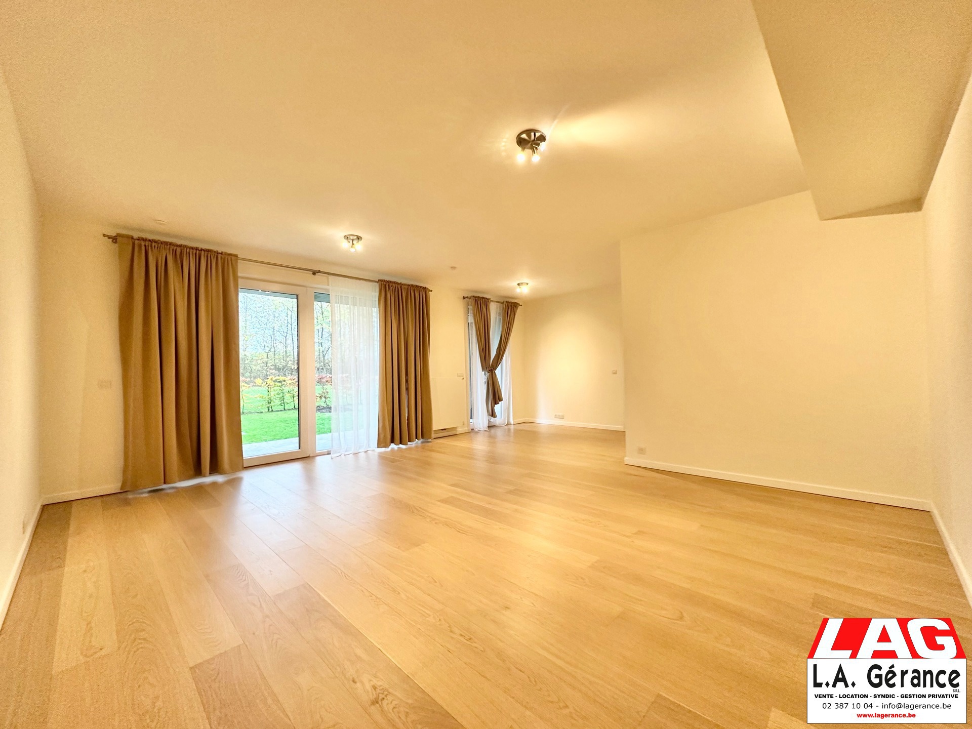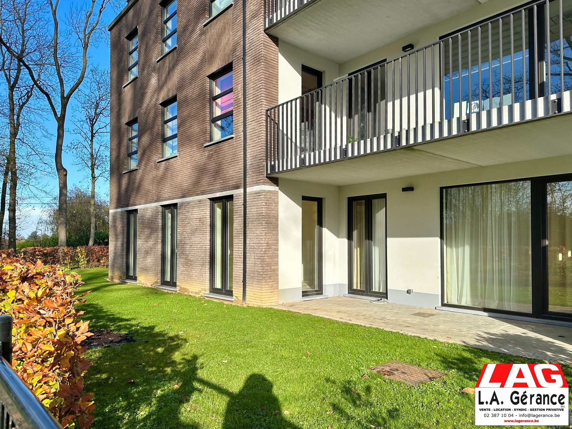 BRAINE-L'ALLEUD – L.A. Gérance est fière de vous proposer ce magnifique et spacieux rez-de-chaussée de 134 m² situé dans un immeuble de standing au sein de la superbe résidence Victor Hugo. Ce bien, neuf et parfaitement isolé, vous séduira par ses volumes, sa luminosité et son cadre de vie unique : un immense jardin commun entièrement clôturé garantit tranquillité et sécurité, tandis qu’une grande terrasse et un jardin privatif idéalement orientés offrent un environnement verdoyant et calme. Idéalement situé, l’appartement se trouve à deux pas des commerces, d’une salle de sport et d’un arrêt de bus, tout en étant légèrement en retrait, ce qui assure un cadre paisible sans nuisance. Il se compose d’un hall d’entrée avec WC séparé, d’un séjour lumineux de 36 m² avec cuisine ouverte entièrement équipée, d’une terrasse à l’arrière, d’un hall de nuit menant à deux chambres, à une buanderie, à un second WC et à une salle de douche, ainsi que d’une chambre principale de 17 m² avec salle de bain privative. Au sous-sol (-1), vous profiterez de deux emplacements de parking intérieurs. La résidence met à disposition un local vélos et un local poubelles. Les charges s’élèvent à 170 €/mois pour l’entretien des communs. Il faut compter en sus, 200 € pour l’entretien de la chaudière et 225 € pour celui de la VMC chaque année. Pour toute information complémentaire, contactez-nous à info@lagerance.be ou au 02/387.10.04.