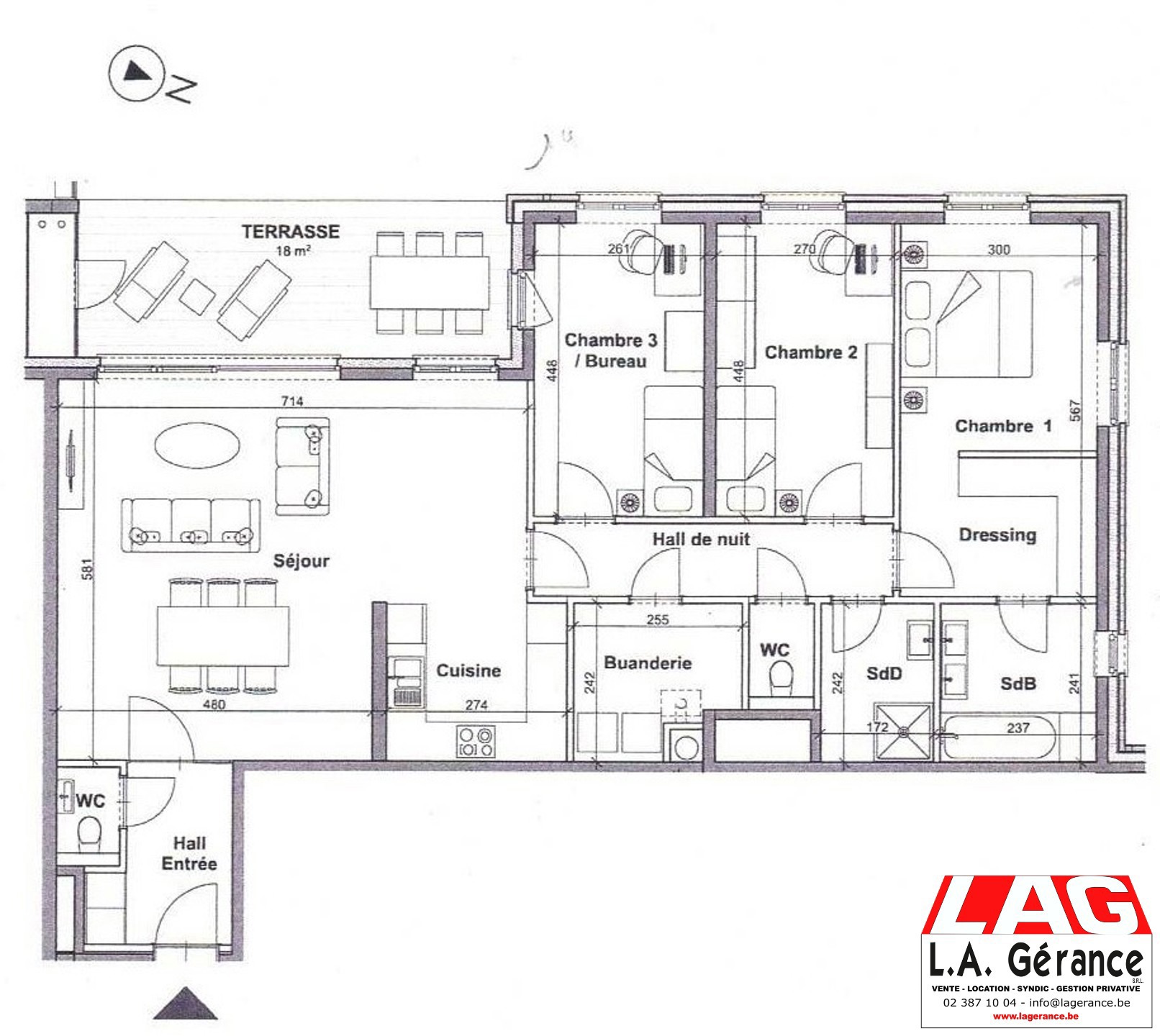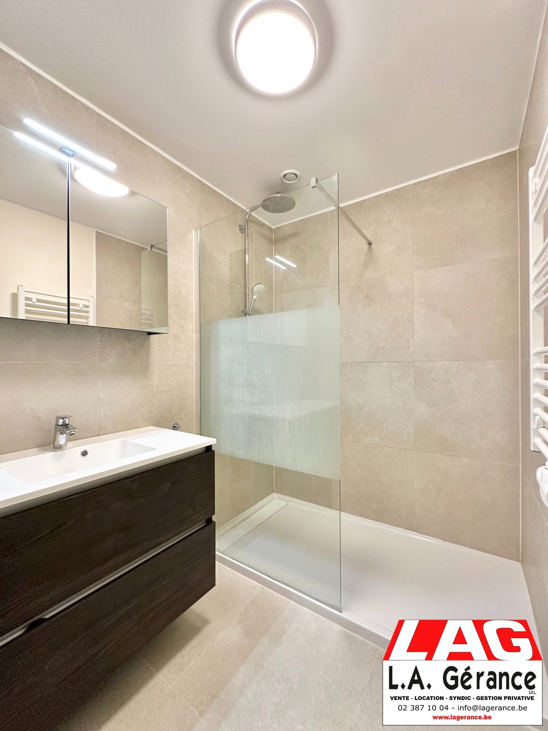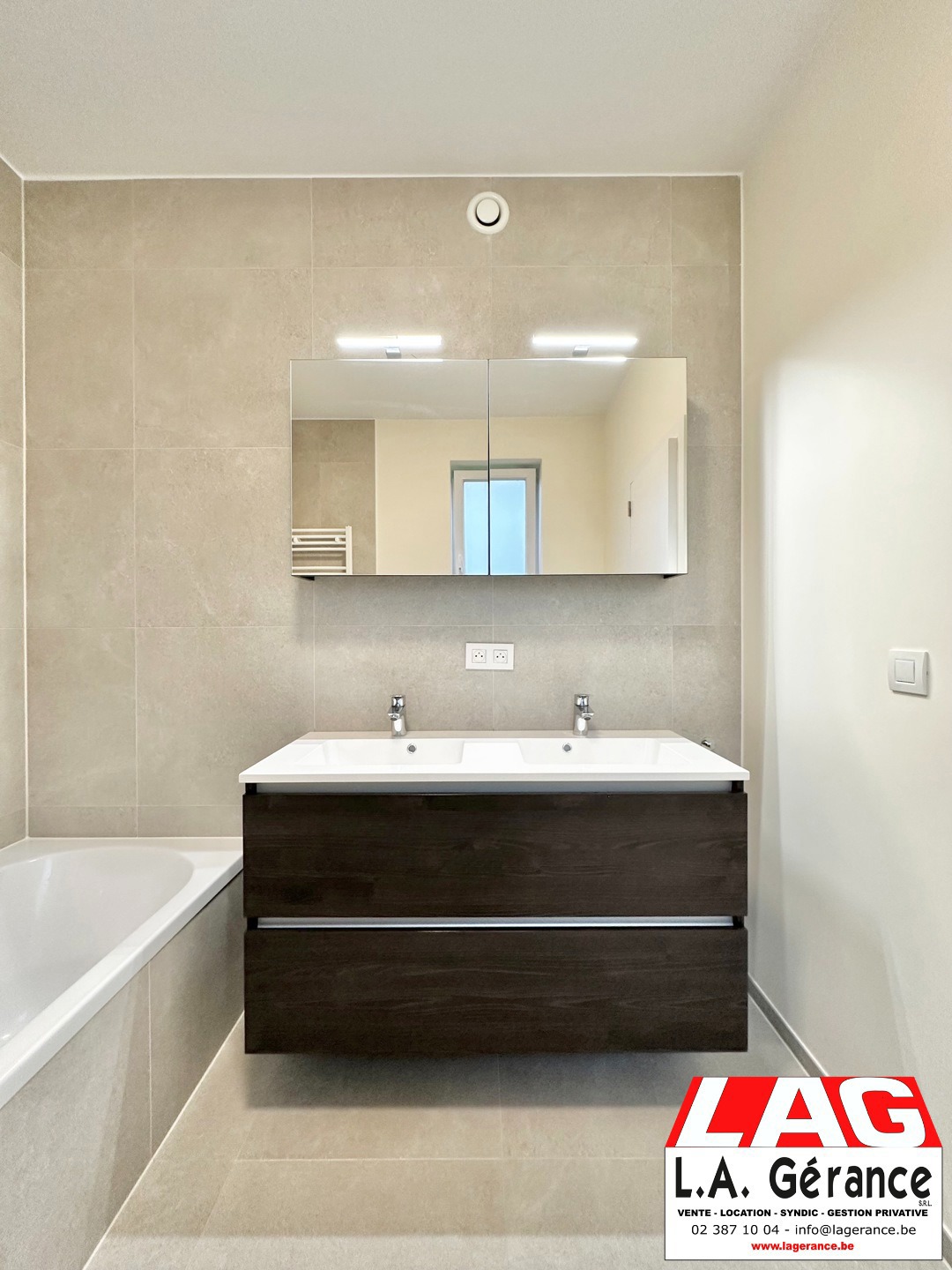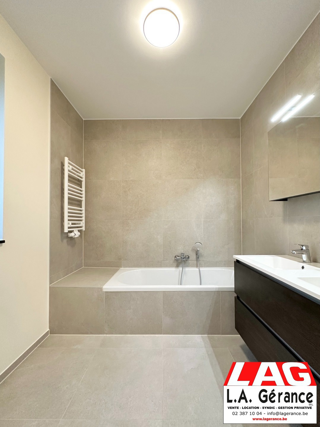 BRAINE-L'ALLEUD – L.A. Gérance est fière de vous proposer ce magnifique et spacieux rez-de-chaussée de 134 m² situé dans un immeuble de standing au sein de la superbe résidence Victor Hugo. Ce bien, neuf et parfaitement isolé, vous séduira par ses volumes, sa luminosité et son cadre de vie unique : un immense jardin commun entièrement clôturé garantit tranquillité et sécurité, tandis qu’une grande terrasse et un jardin privatif idéalement orientés offrent un environnement verdoyant et calme. Idéalement situé, l’appartement se trouve à deux pas des commerces, d’une salle de sport et d’un arrêt de bus, tout en étant légèrement en retrait, ce qui assure un cadre paisible sans nuisance. Il se compose d’un hall d’entrée avec WC séparé, d’un séjour lumineux de 36 m² avec cuisine ouverte entièrement équipée, d’une terrasse à l’arrière, d’un hall de nuit menant à deux chambres, à une buanderie, à un second WC et à une salle de douche, ainsi que d’une chambre principale de 17 m² avec salle de bain privative. Au sous-sol (-1), vous profiterez de deux emplacements de parking intérieurs. La résidence met à disposition un local vélos et un local poubelles. Les charges s’élèvent à 170 €/mois pour l’entretien des communs. Il faut compter en sus, 200 € pour l’entretien de la chaudière et 225 € pour celui de la VMC chaque année. Pour toute information complémentaire, contactez-nous à info@lagerance.be ou au 02/387.10.04.